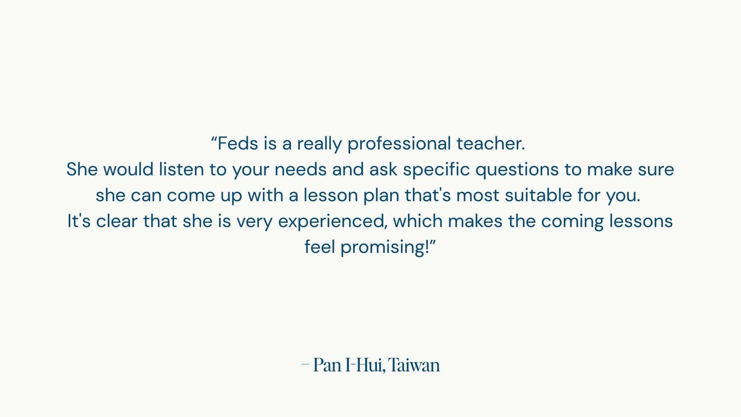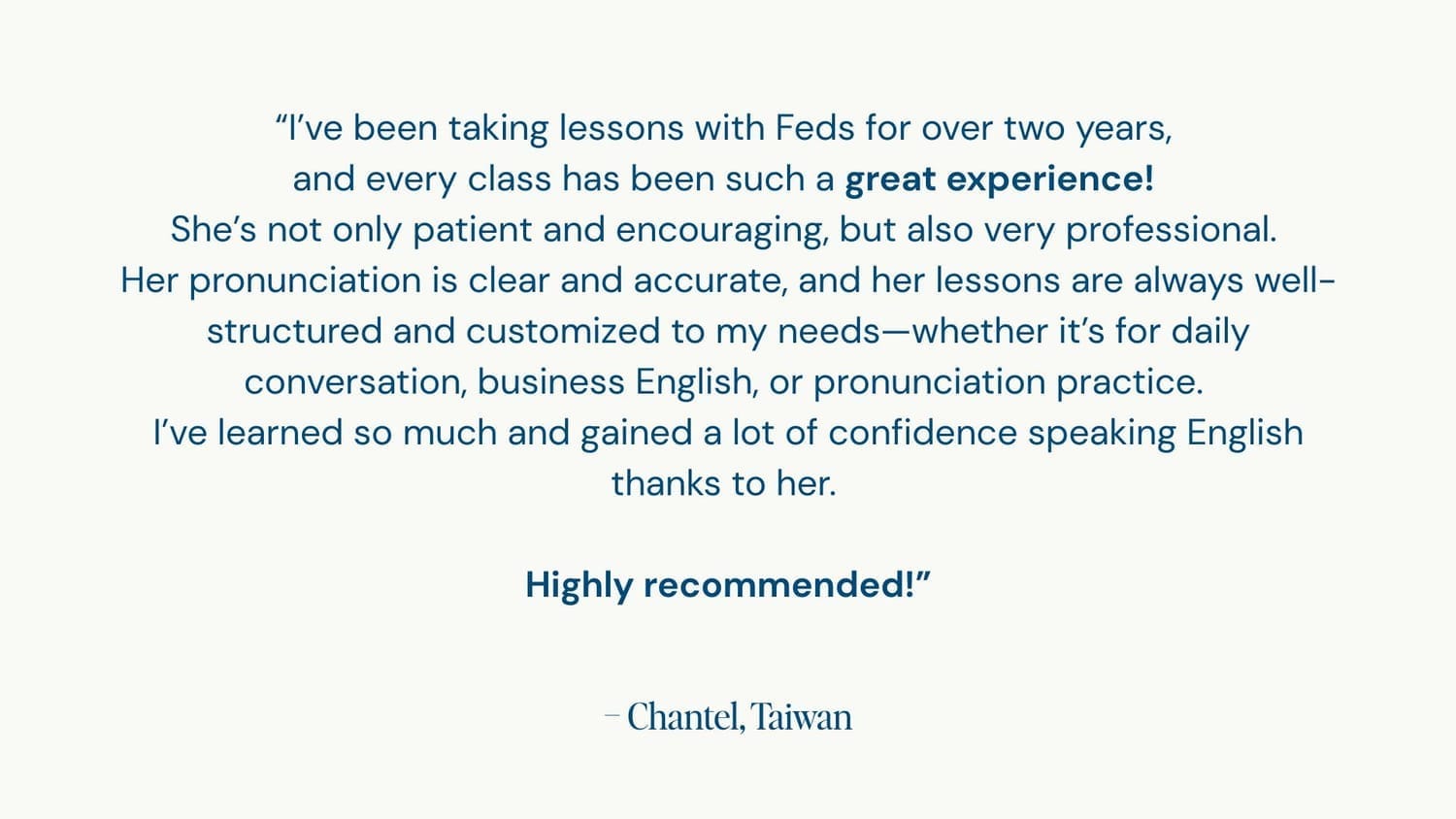 Feds doesn’t just teach English. She coaches confidence, rewires beliefs, and shows learners how to own their words — in any language, on any stage, at any age.